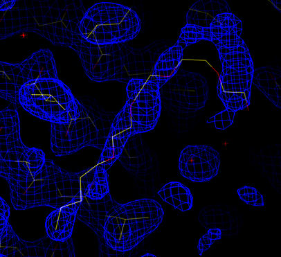 After analysis of the geometry and fit to the experimental data electron density maps should be checked. Cross-validated, sigma-A weighted 2Fo-Fc and gradient maps are calculated:
